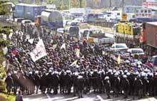 전국농민회총연맹 등 농민단체들은 21일 전국의 고속도로를 점거한채 정부의 '농정실패'를 비판하는 격렬한 시위를 벌였다. 38조원에 이르는 '농가부채 경감을 위한 특별조치법' 제정을 요구하는 전국의 농민들은 영호남이 따로 없었다.