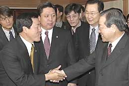 뿐만아니라 자민련과의 합당에 반대해왔던 민주당내 개혁그룹내에서도 최근 자민련과의 '합당 불가피론'을 인정해가는 분위기다. 지난 2월 21일에는 민주당 김근태 최고위원등 개혁파의원 9명과 만찬을 했고 이 자리에서 김 최고위원은“김 명예총재께서 정치 안정과 경제 안정을 위해 적극적인 역할을 해 달라”고 요청했고, JP는 “같이 협력해서 좋은 나라를 만들고, 공동정부로서 유종의 미를 거두자”고 화답했다.