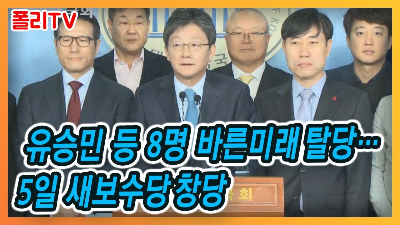 새로운보수당 창당준비위원장인 하태경 의원을 비롯해 유승민, 정병국, 이혜훈, 오신환, 유의동, 정운천, 지상욱 의원 등 8명은 오늘, 국회에서 기자회견을 열고 "무너진 보수를 재건하기 위해 바른미래당을 떠난다"고 밝혔다. [영상=국회방송]