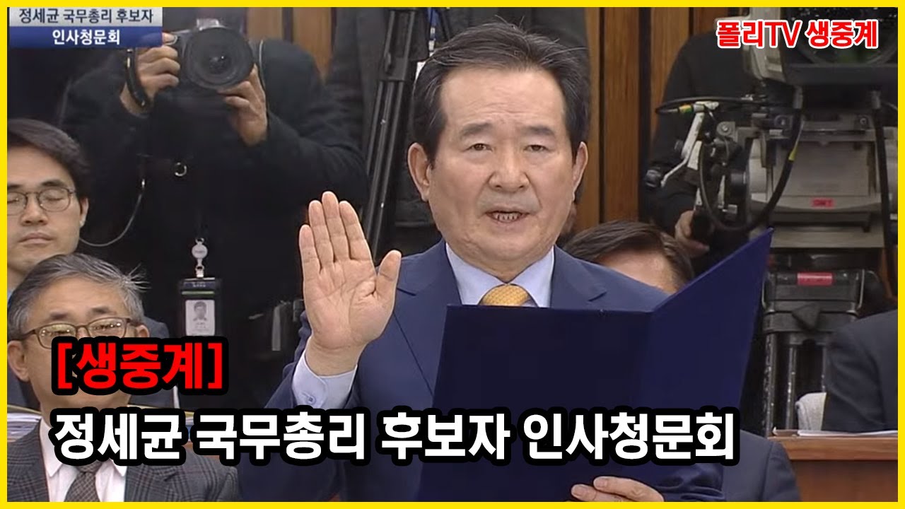 - [폴리TV 생중계] 정세균 국무총리 후보자 인사청문회 (2020.01.08)]