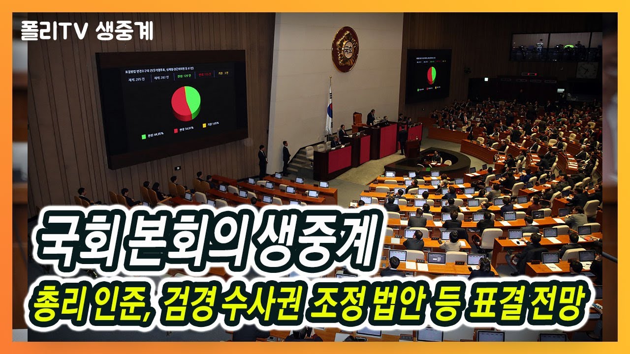 - [폴리TV 생중계] 국회 본회의...민생법안·검경수사권조정안·유치원3법 상정 예정
