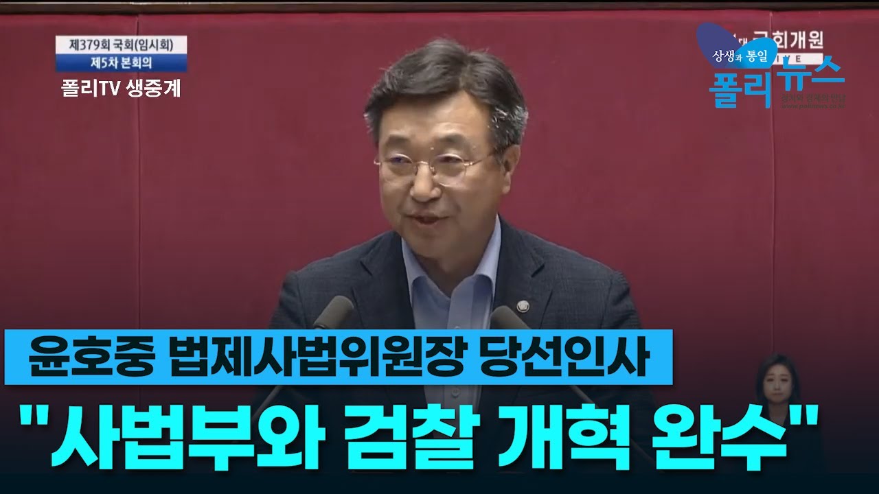 윤 의원은 "저는 국회 법사위원장으로서 우리 사회의 마지막 개혁 과제를 하나하나 완수할것이다. 사법부, 검찰 개혁을 완수하고 공정하고 정의로운 사법 질서 정착 될수 있게 노력하겠다"며 "일하는 국회 잘못된 관행 제도를 혁신하는데 앞장설 것이다. 저를 선출해줄 모든분들에게 감사드린다. 많은 지도 바란다"고 밝혔다. [영상제공:국회방송]
