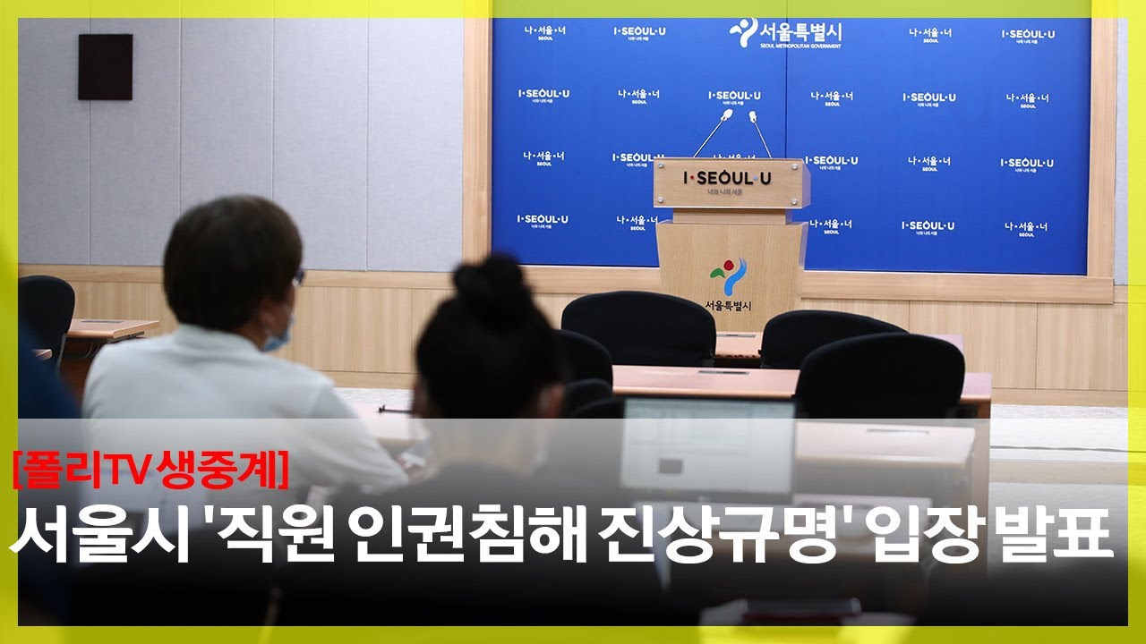 서울시는 '직원 인권침해 진상규명에 대한 서울시 입장'을 15일 오전 11시 시청 2층 브리핑실에서 발표한다.서울시는 고 박원순 전 서울시장의 극단적 선택을 한 이유로 추정되는 전직 비서 성추행 의혹과 그에 따른 박 전 시장의 피소에 대한 입장과 해명이 담길 전망이다. [영상=서울시]