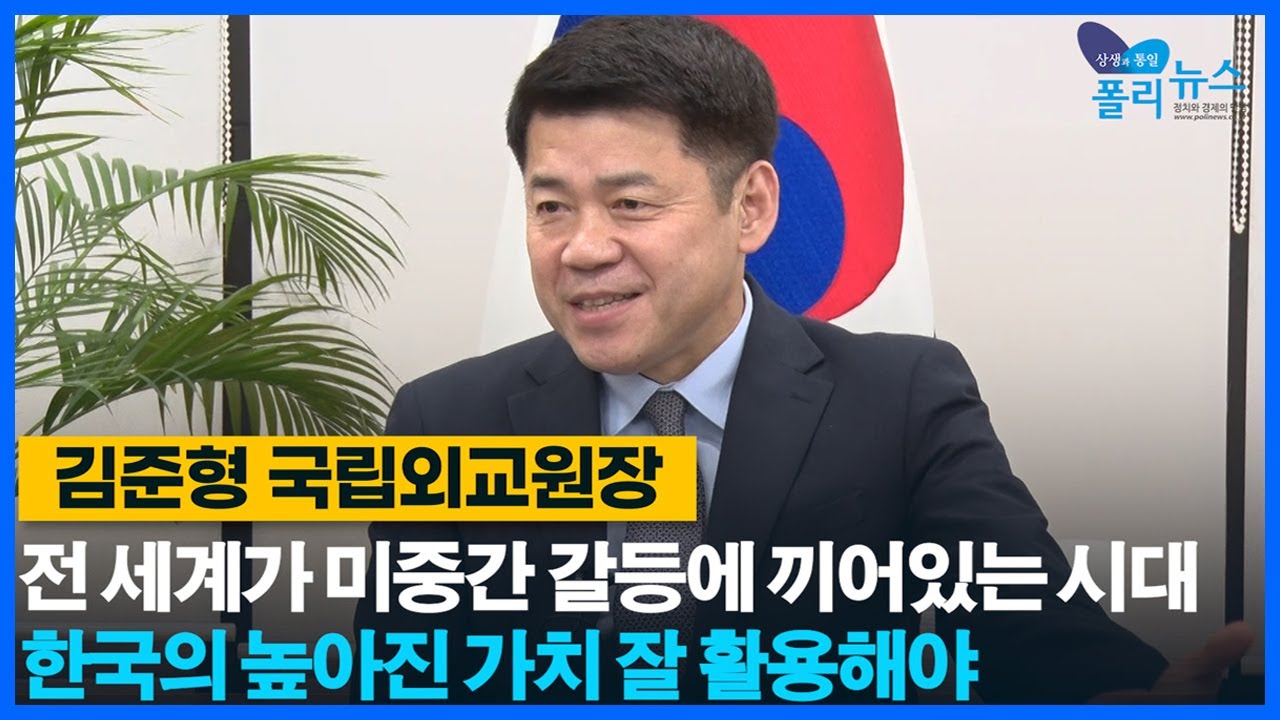 김준형 국립외교원장은 23일 국립외교원에서 폴리뉴스 김능구 대표와 진행한 인터뷰에서, 최근의 국제질서는 “전 세계가 미중간 갈등에 끼어있는 시대”라면서 “한국의 높아진 가치를 현명하게 활용하는 지혜가 필요하다”고 강조했다.