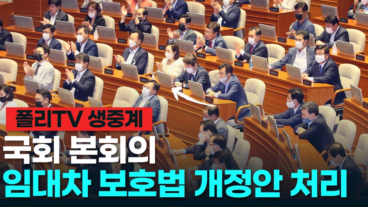 국회는 30일 오후 본회의를 열어 전월세상한제와 계약갱신청구권을 도입하는 내용의 주택임대차보호법 및 상가건물임대차보호법 개정안을 처리한다. [영상제공:국회방송]