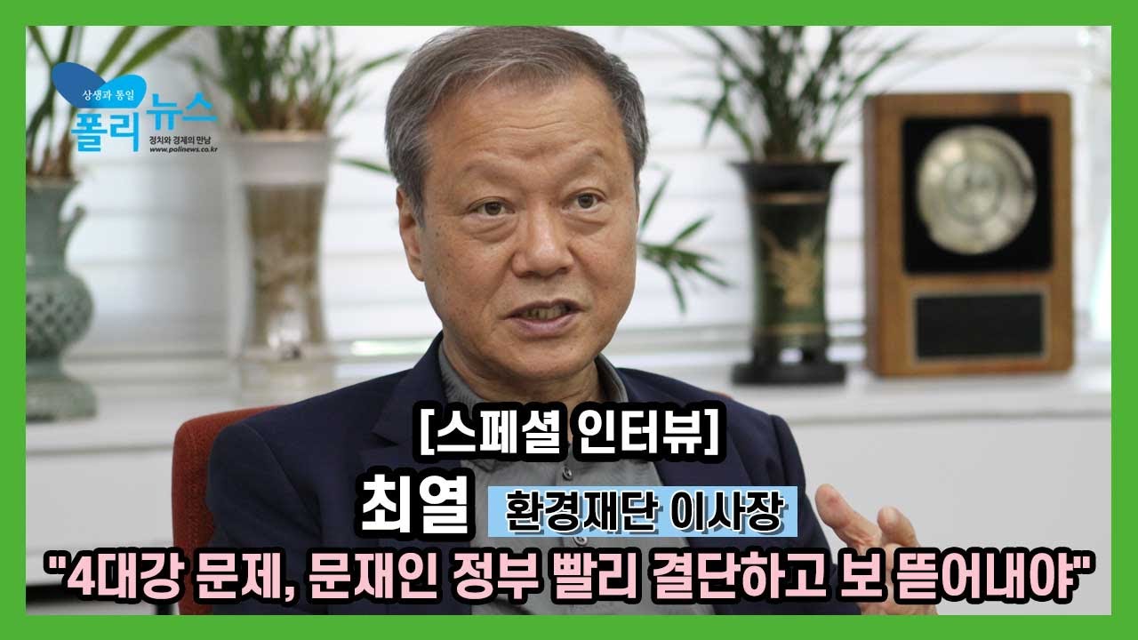 - [스페셜 인터뷰] 최열 환경재단 이사장① “4대강 문제, 문재인 정부 빨리 결단하고 보 뜯어내야”