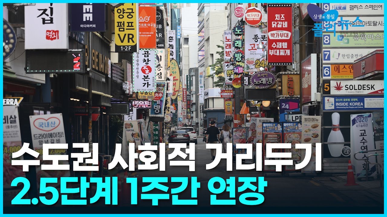 - 수도권 사회적 거리두기 2.5단계 1주 연장...전국은 2단계 2주 연장