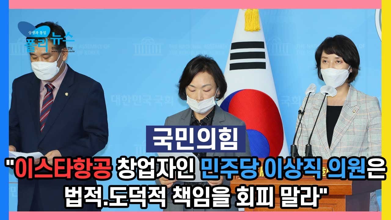 국민의힘 이영, 최승재, 한무경 의원은 14일 국회에서 기자회견을 열고 "이스타항공 창업자인 더불어민주당 이상직 의원은 법적·도덕적 책임을 회피하지 말고 사태를 끝까지 해결하라"고 촉구했다.