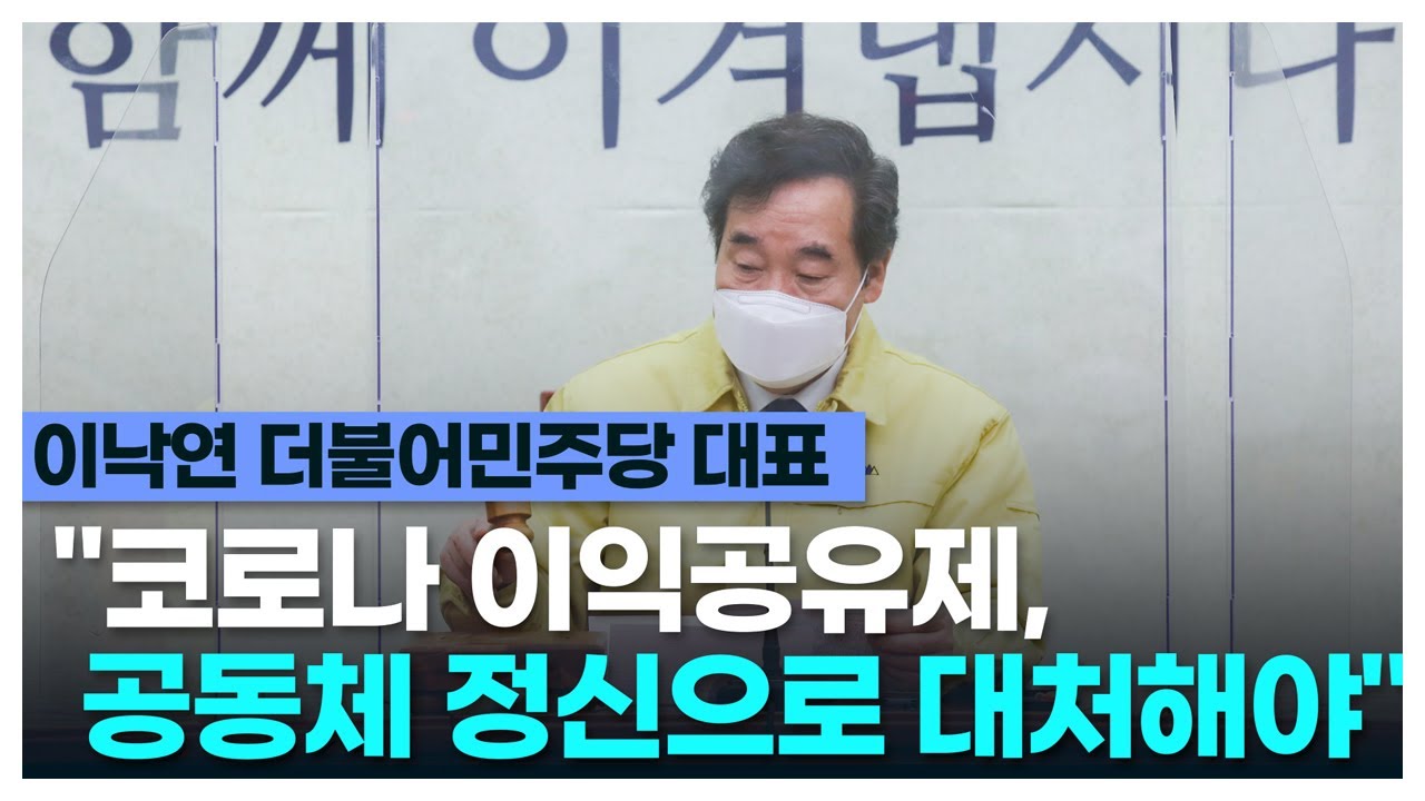 이낙연 더불어민주당 대표는 15일 오전 최고위원회의에서 "우리 경제 사회 이전부터 내제됐던 양극화가 코로나를 겪으며 더 깊고 넓게 퍼지고 있다"며 '코로나 이익 공유제'는 그런 현실에서 우리가 상부상조의 해법을 찾자는 것"이라고 말했다.