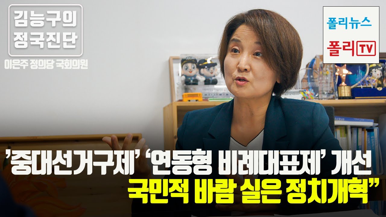 - [김능구의 정국진단] 이은주 정의당 의원② "’중대선거구제’ 확대, ‘연동형 비례대표제’ 개선…국민적 바람 실은 정치개혁”