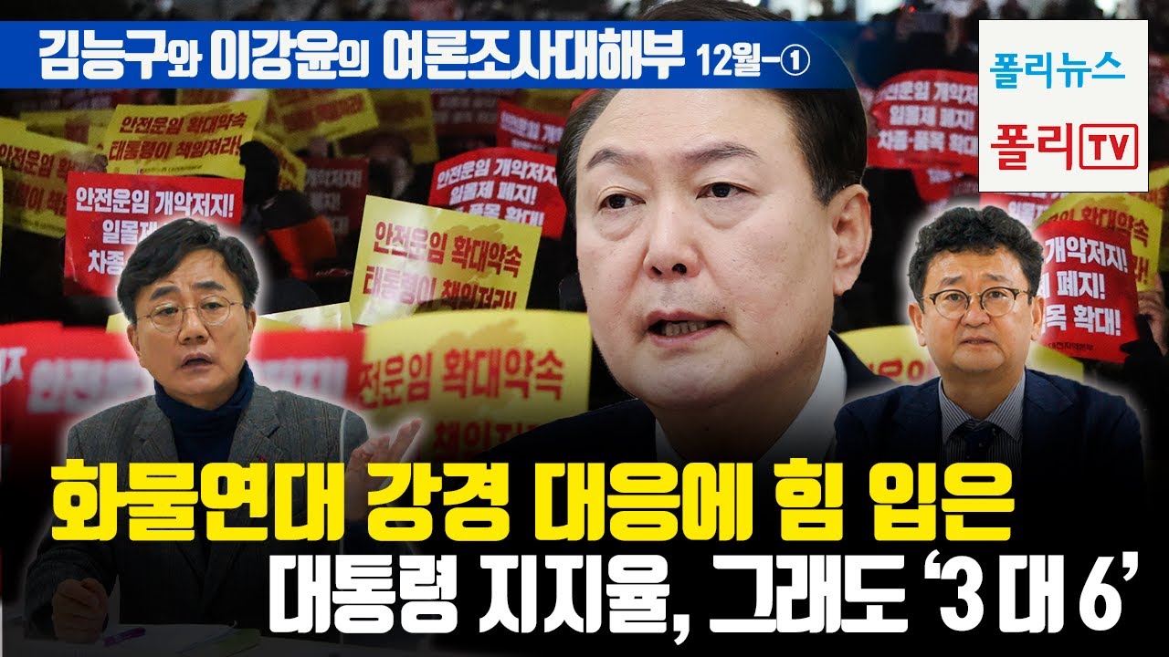 - [김능구와 이강윤의 여론조사 대해부 12월①] “화물연대 강경 대응에 힘 입은 대통령 지지율, 그래도 ‘3 대 6’”