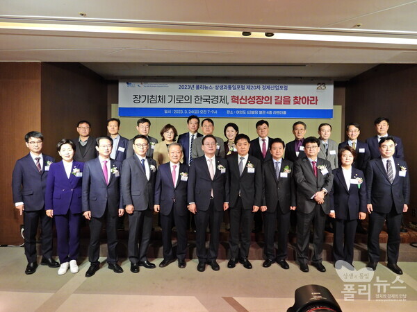 ![폴리뉴스(대표이사 김능구)와 상생과통일포럼(대표 정우택 국회부의장‧노웅래 더불어민주당 의원)이 24일 서울 여의도 63빌딩 별관 4층에서 ‘장기침체 기로의 한국경제, 혁신 성장의 길을 찾아라’를 주제로 개최한 ‘제20차 경제산업포럼’이 성황리에 마무리됐다. [사진=강경우PD]](https://cdn.polinews.co.kr/news/photo/202303/605706_405901_837.jpg)