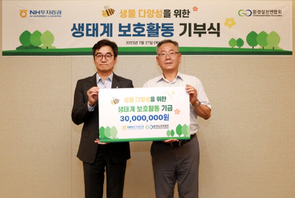 NH투자증권은 환경실천연합회에 ‘생물다양성을 위한 생태계 보호활동 기부금’ 3천만원을 전달했다고 지난 28일 밝혔다.
