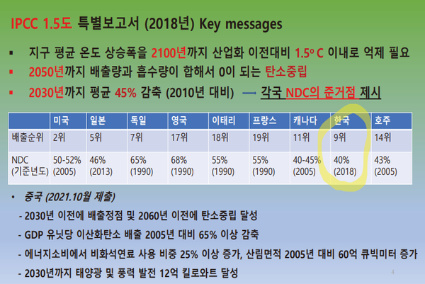 현재 우리는 ▲IPCC 1.5도 특별보고서 ▲6차 보고서를 눈여겨볼 필요성이 있다. IPCC 1.5도 특별보고서는 지구 평균 온도 상승폭을 2100년까지 산업화 이전대비 1.5℃ 이내로 억제할 필요성을 강조하며, 2050년까지 배출량과 흡수량이 합해서 0이 되는 탄소중립을 목표로 하고 있다. 2030년까지 평균 45% 감축해야 한다.(2010년 대비)
