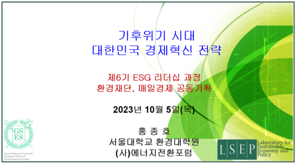 본 기사는 지난 10월 5일에 열린 ‘제6기 매경·환경재단 ESG 리더십 과정’ 4주차 과정에서 홍종호 서울대학교 교수의 기조강연 ‘기후위기 시대, 대한민국 경제혁신 전략’의 내용을 토대로 다루고 있다.