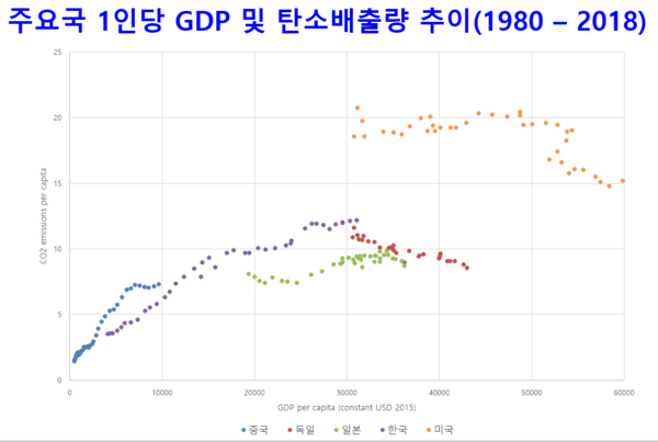 지난 경제는 200년 동안 화석 연료를 통해 탄수 배출과 함께 급성장했다. 특히 한국은 탄소배출 유발형 경제성장을 해오며 전 세계 탄소 배출량 9위를 차지했다.