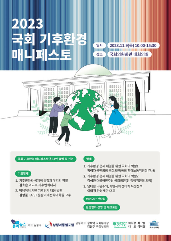 - '2023 국회 기후환경 매니페스토' 포럼 11월9일 개최