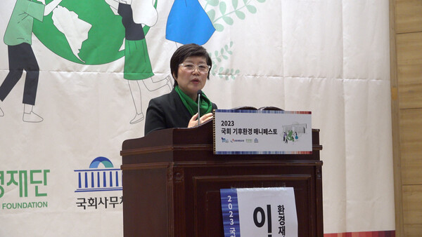 [폴리뉴스 서경선 기자] 이미경 환경재단 대표가 “플라스틱 사용 금지 완화는 환경부 간판을 내려야 할만큼 무도하다고 느꼈다”며 환경부를 강하게 질타했다. 이미경 대표는 9일 폴리뉴스(대표 김능구), 상생과통일포럼(공동대표 정우택·김영주 국회부의장), 환경재단(이사장 최열) 공동주최로 국회의원회관 대회의실에서 열린 ‘2023 국회 기후환경 매니페스토’ 발제를 통해 환경부의 플라스틱 관련 발표는 “설명도 없고 논리도 없다”며 “아무리 선거용이라고 해도 할 게 있고 못할 게 있는데 이렇게까지 하면 안 된다”고 말했다.