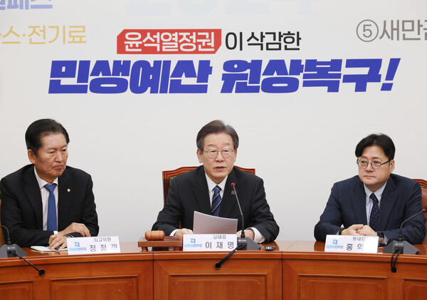 [폴리뉴스 장성열 기자] 이재명 더불어민주당 대표는 17일 “고금리로 엄청난 특별한 예상되지 못한 이익을 얻은 금융기관들, 그리고 고에너지가로 많은 이익을 거둔 정유사 등에 대해서 횡재세를 도입하는 입법을 추진 할 것”이라고 말했다.
