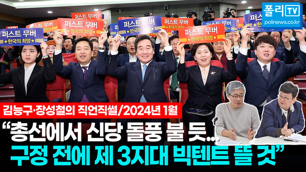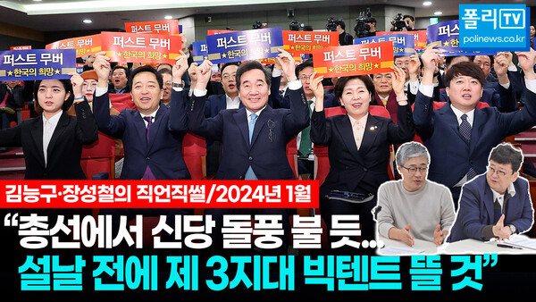 [폴리뉴스 서경선 기자] 김능구 폴리뉴스 대표와 장성철 공론센터 소장은 10일 폴리뉴스 스튜디오에서 가진 2024년 첫 번째 '직언직썰'에서 이준석 신당 등 제3지대 신당의 향배와 총선에 임하는 여야의 동향에 대해 대담을 가졌다.