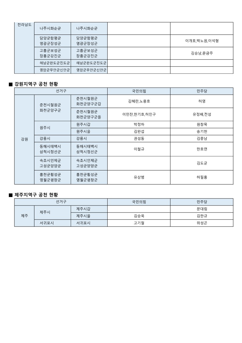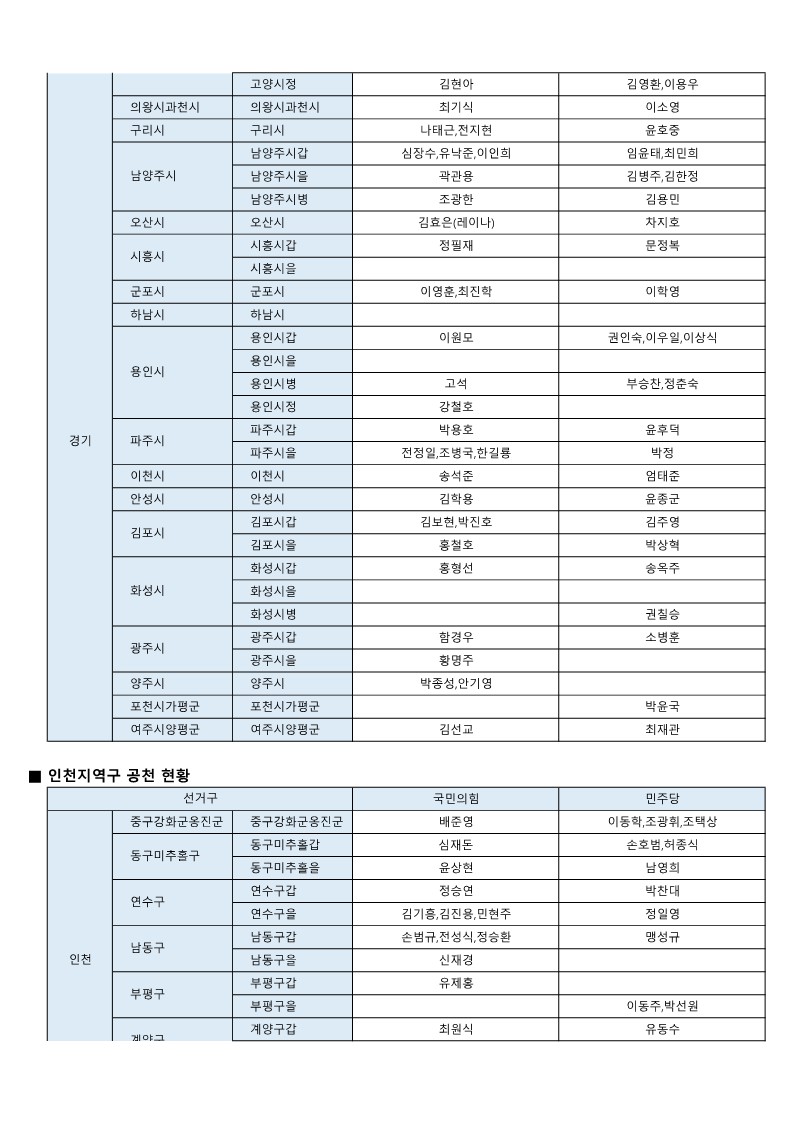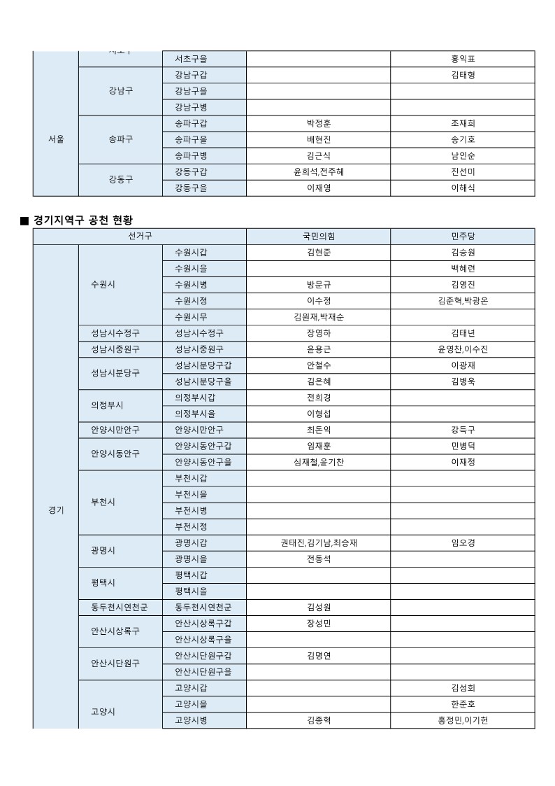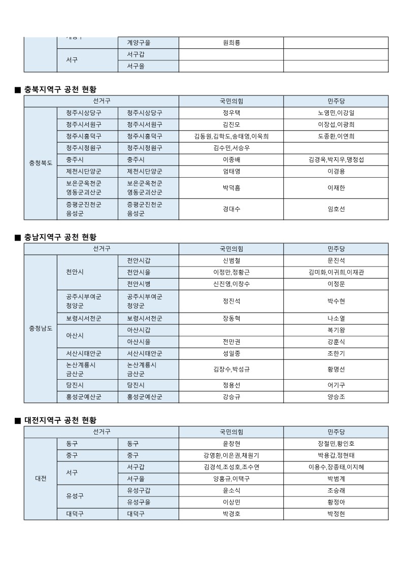 - [22대 총선] 국민의힘-더불어민주당 공천 발표 모음(~3월 7일 현재)