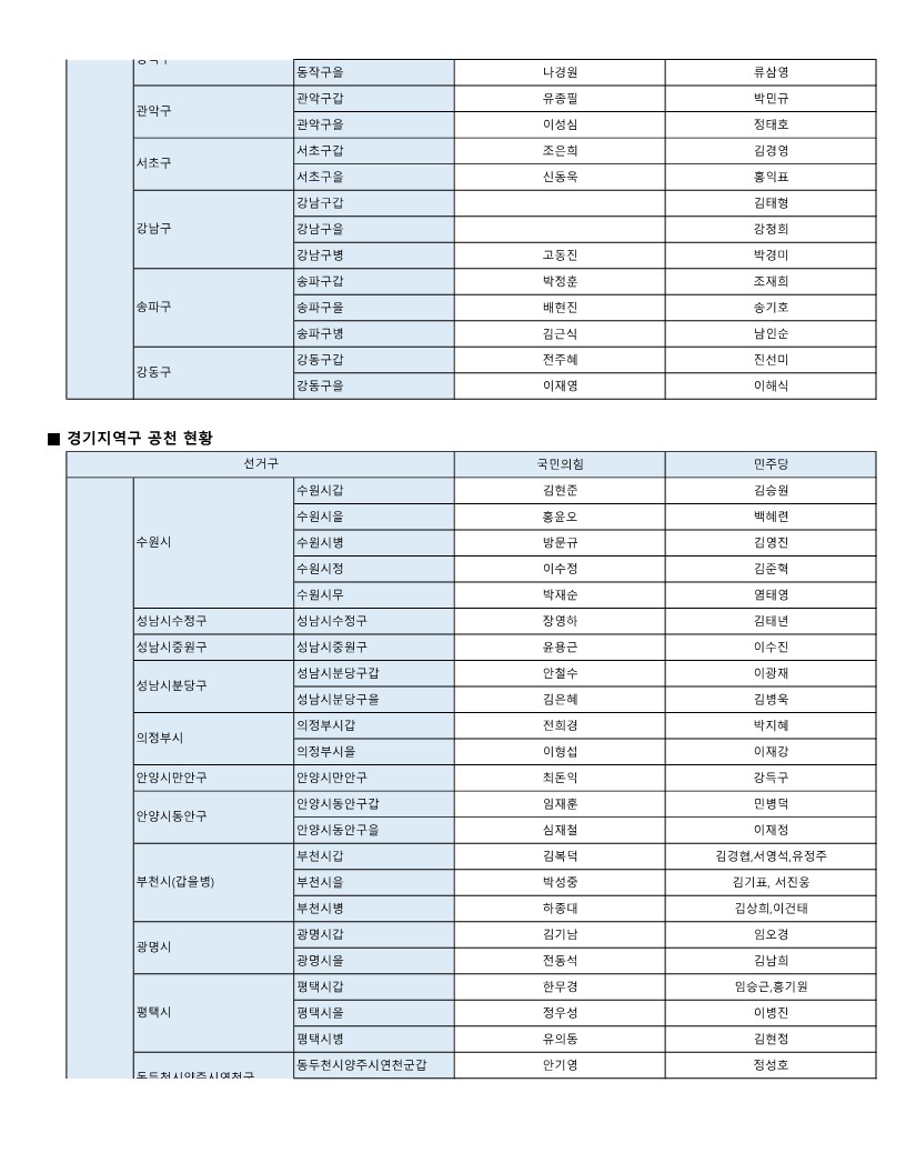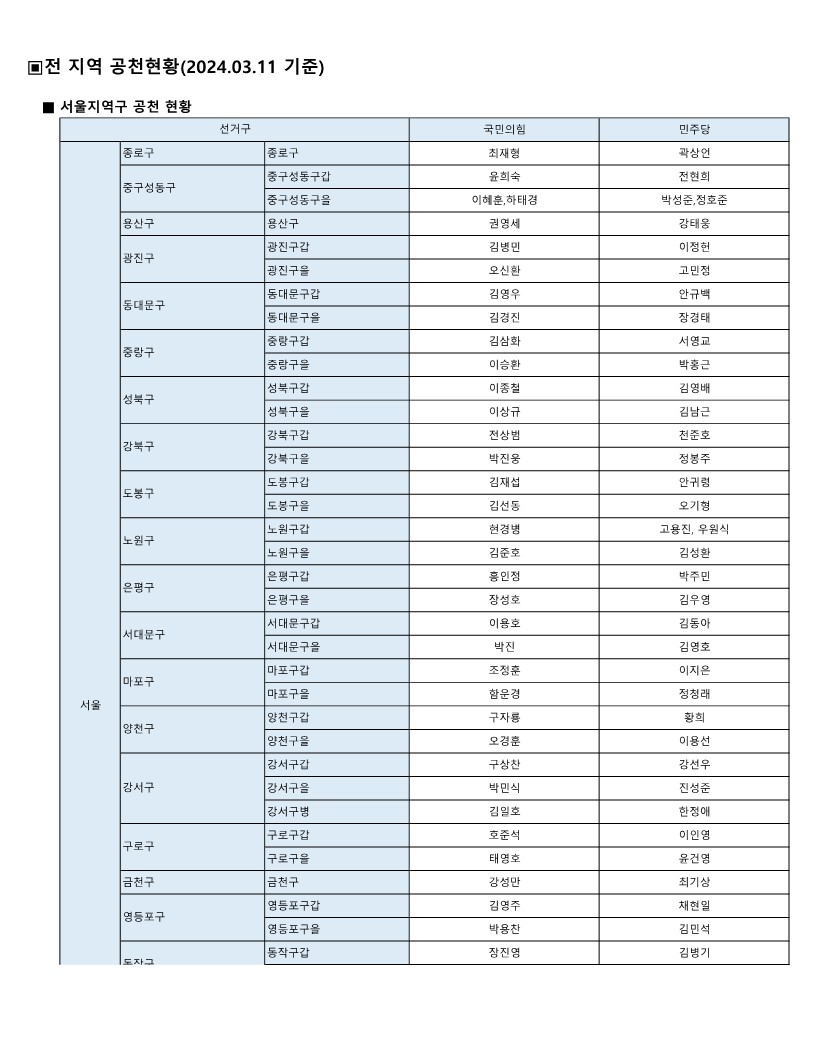 - [22대 총선] 국민의힘-더불어민주당 공천 발표 모음(~3월 9일 현재)