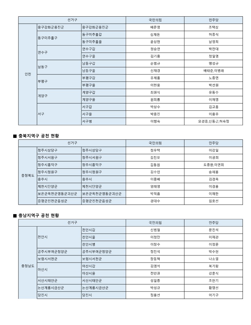 - [22대 총선] 국민의힘-더불어민주당 공천 발표 모음(~3월 7일 현재)