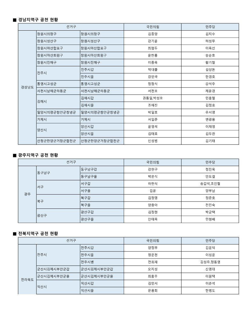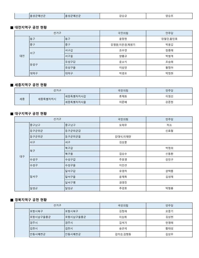 - [22대 총선] 국민의힘-더불어민주당 공천 발표 모음(~2월29일 현재)