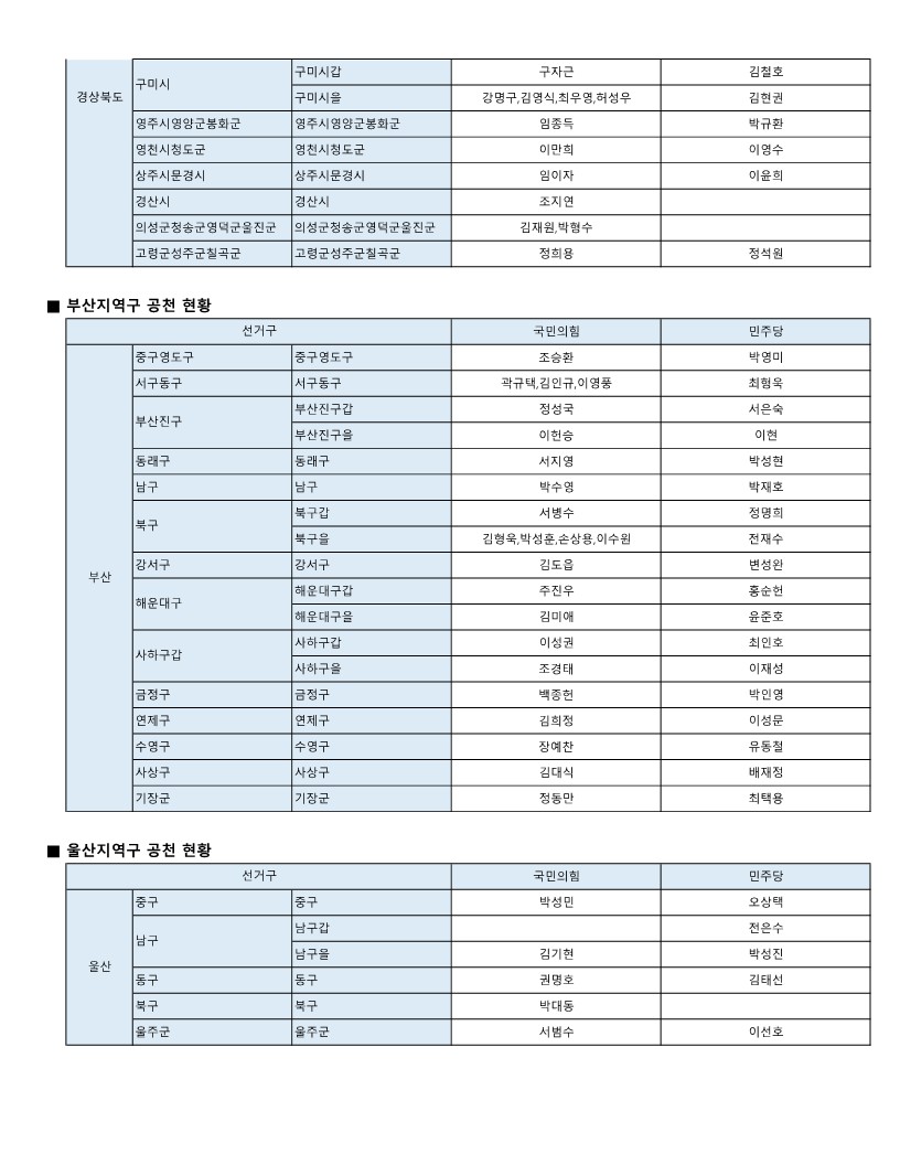 - [22대 총선] 국민의힘-더불어민주당 공천 발표 모음(~2월27일 현재)