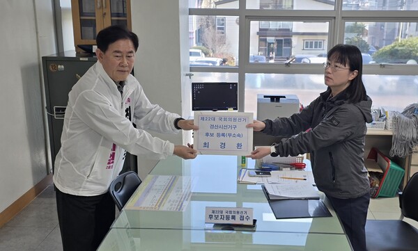 박근혜 정부에서 경제부총리를 지낸 최경환 전 의원은 이날 오전 경산시 선거관리위원회를 방문, 무소속 후보로서 4.10총선 국회의원 후보 등록을 마쳤다
