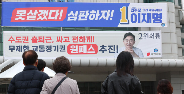 [폴리뉴스 김민주 기자] 22대 총선 선거운동 첫날인 28일, 여야 차기 대권주자들이 후보로 나선 인천 계양을 민심은 그야말로 박빙이었다. 계양을은 더불어민주당 텃밭으로, 민주당 대표인 이재명 후보가 주장하는 ‘정권심판론’ 열기가 높았지만, 국민의힘 공동선거대책위원장인 원희룡 후보에 대한 ‘인물론’도 만만치 않았다.
