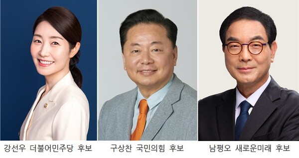 ‘이재명의 입’으로 통하는 민주당 강선우 후보와 총선에 5번째 도전하는 ‘지역 터줏대감’ 국민의힘 구상찬 후보의 각축 속에 제3지대의 기치를 들고 지역의 호남 민심을 파고 드는 남평오 후보가 어디까지 추격할지 주목된다.
