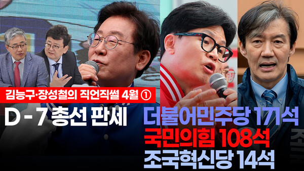 - [폴리TV][김능구·장성철의 직언직썰 4월 ①] D-7 총선 판세, 국민의힘 108석-민주당 171석-조국혁신당 14석