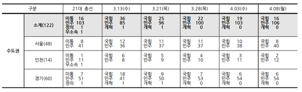 <폴리뉴스 22대 총선 수도권 판세 분석 추이>
