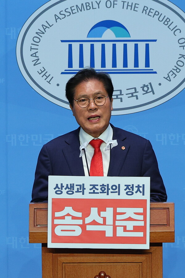 송석준 의원은 이날 국회 소통관에서 출마 회견을 열고 "철저한 반성과 성찰을 통한 분골쇄신의 노력으로 당의 환골탈태의 변화와 혁신을 이뤄내겠다"고 말했다.