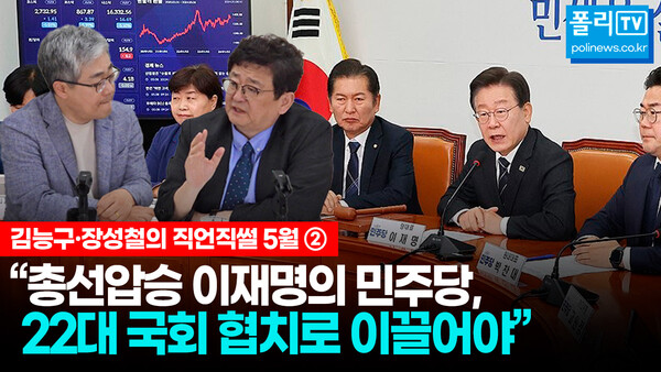 - [폴리TV][김능구·장성철의 직언직썰 5월②] “총선압승 이재명의 민주당, 22대 국회 협치로 이끌어야"