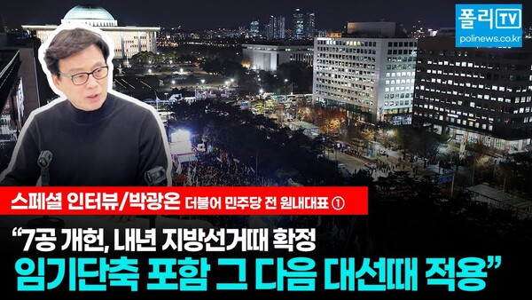 [폴리뉴스 이준수 PD] 박광온 더불어 민주당 전 원내대표는 2월13일 '새로운 대한민국을 묻다'를 주제로 한 김능구 폴리뉴스 대표와의 정국인터뷰에서 '7공화국 개헌'의 필요성을 역설했다.