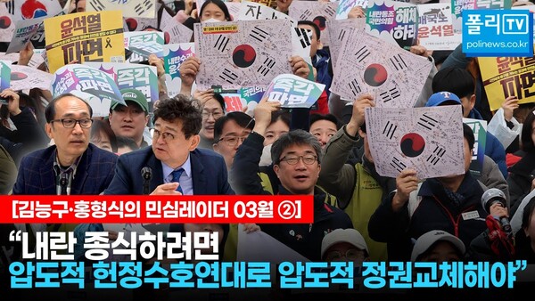 [폴리뉴스 이준수PD] 김능구 폴리뉴스 대표와 홍형식 한길리서치 소장은 12일 서울 여의도 폴리뉴스 폴리TV 스튜디오에서 가진 <민심레이더>에서 내란 종식을 위해서는 헌정수호연대가 필요하다고 말했다.