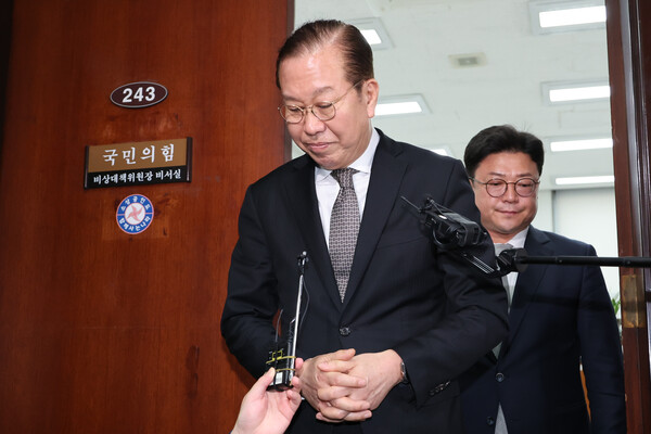 권영세 비상대책위원장은 당초 선고 직후 기자간담회를 예고했다가 취소한 뒤 위원장실 앞에 서서 짧게 입장 표명했다. 권 비대위원장은 “우리 당으로서는 대단히 유감스럽다”며 “앞으로 대법원에서 신속하게 6·3·3 원칙에 따라 재판해서 정의가 바로 잡히기를 기대한다”고 밝혔다.