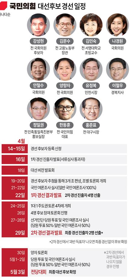 - 국힘, 16일 1차 경선·5월 3일 최종 대선 후보 선출