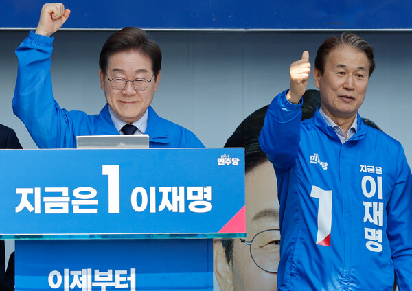[폴리뉴스 김민주 기자] 이재명 더불어민주당 대선 후보가 6·3 대통령 선거 공식 선거운동 이틀째인 13일 보수 텃밭 지역인 TK·PK 지역을 순회하며 험지를 공략했다.