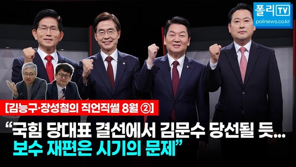 - [김능구·장성철의 직언직썰 8월②][전문] "국힘 당대표 결선에서 김문수 당선될 듯... 보수재편은 시기 문제"