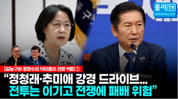 - [폴리TV][김능구·황장수의 닥터둠의 전망 9월①] "정청래·추미애 강경 드라이브... 전투는 이기고 전쟁에 패배 위험"