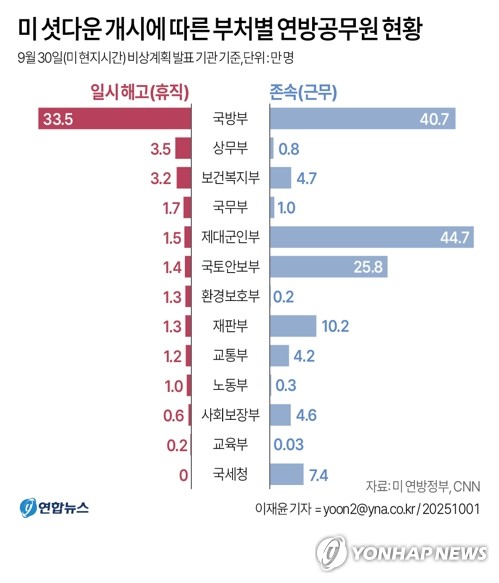 연방정부 셧다운은 직전 셧다운(2018년 12월 22∼2019년 1월 25일) 이후 약 7년 만이다.