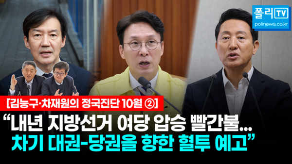 - [폴리TV][김능구·차재원의 정국진단 10월②]"내년 지방선거 여당 압승 빨간불, 차기 대권-당권을 향한 혈투 예고"