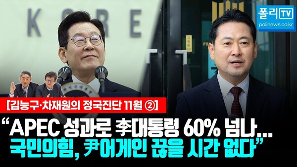 - [김능구·차재원의 정국진단 11월②][전문] "APEC 성과로 李대통령 60% 넘나... 국민의힘, 尹어게인 끊을 시간 없다"