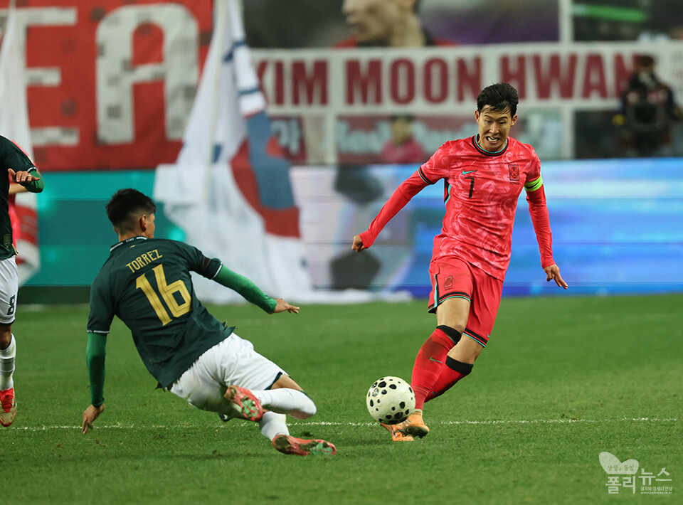 [폴리뉴스 문용준 기자] 14일 대전월드컵경기장에서 '하나은행 초청 남자축구국가대표팀 친선경기' 대한민국(피파랭킹 22위)과 볼리비아(76위)의 경기가 열렸다.