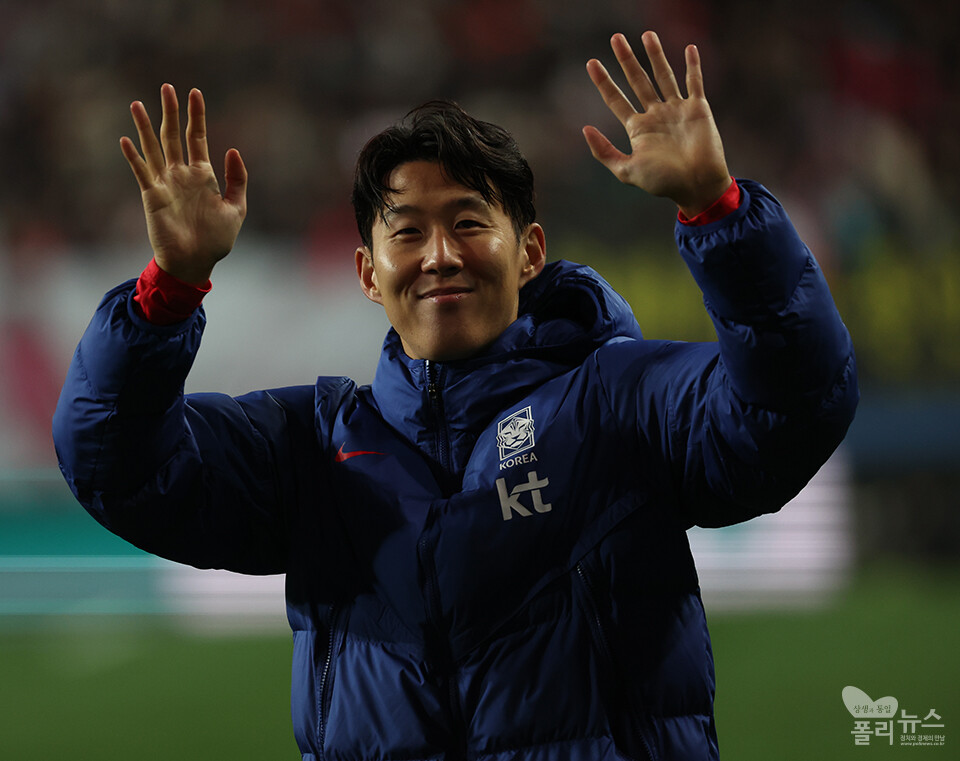 경기 MVP로 선정된 캡틴 손흥민(LAFC)이 경기장을 돌며 팬들에게 인사를 하고 있다.