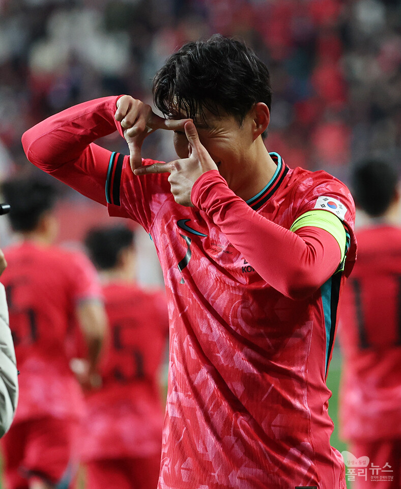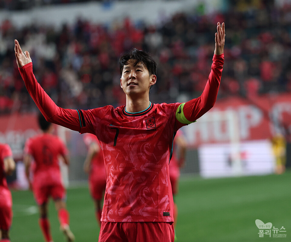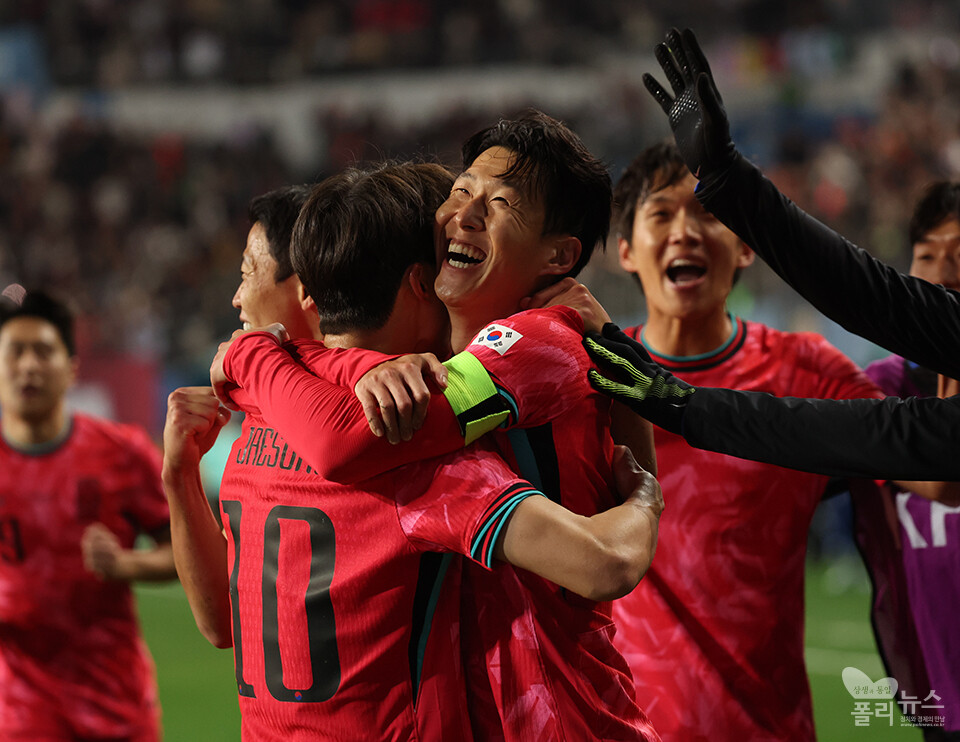 .LAFC의 손흥민은 환상적인 프리킥으로 결승골을 터뜨린 뒤, A매치 100경기 출전을 달성한 이재성을 축하하는 골 세리머니를 펼쳤다.
