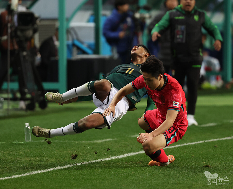 [폴리뉴스 문용준 기자] 14일 대전월드컵경기장에서 '하나은행 초청 남자축구국가대표팀 친선경기' 대한민국(피파랭킹 22위)과 볼리비아(76위)의 경기가 열렸다.